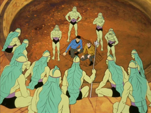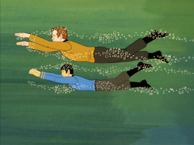While exploring the water planet Argo, Captain Kirk and Mr. Spock are transformed into water breathers