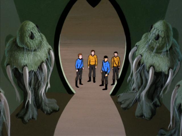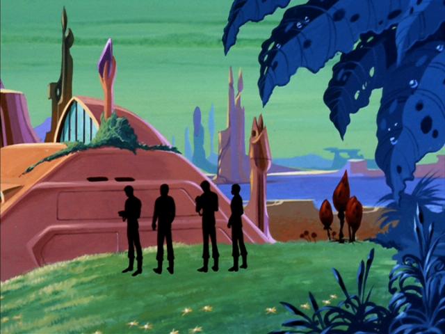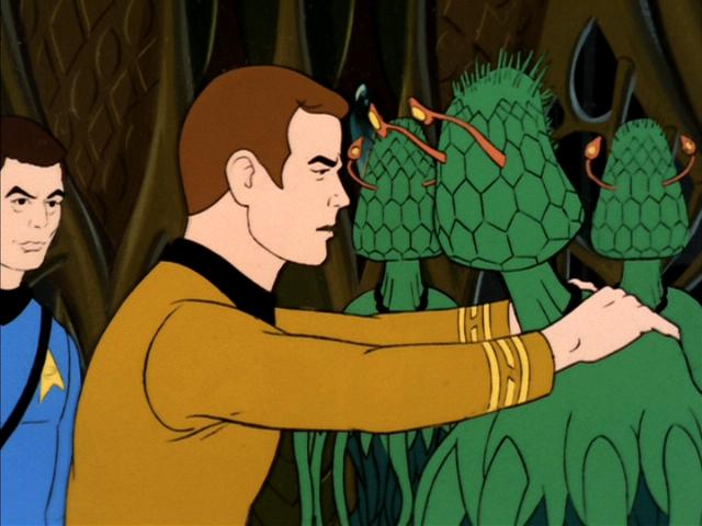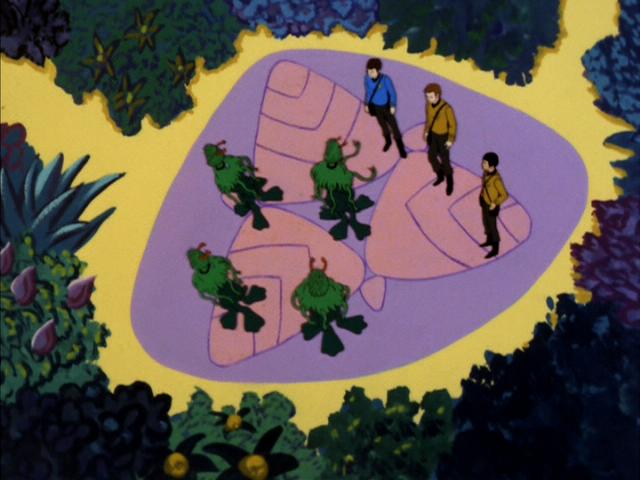 the planet, who are plantlike beings, approach and save Sulu's life.