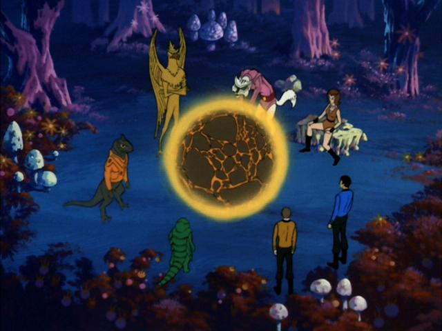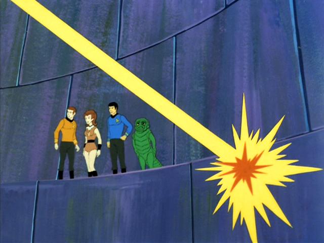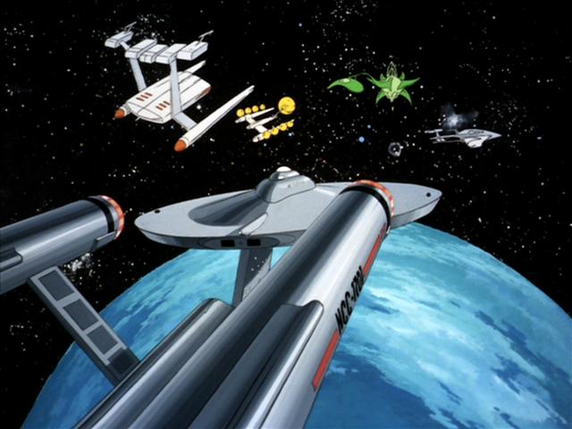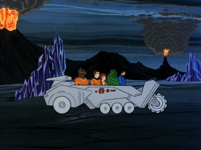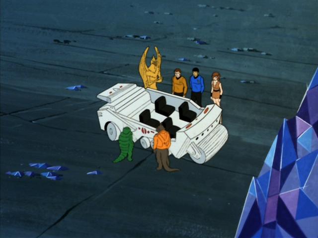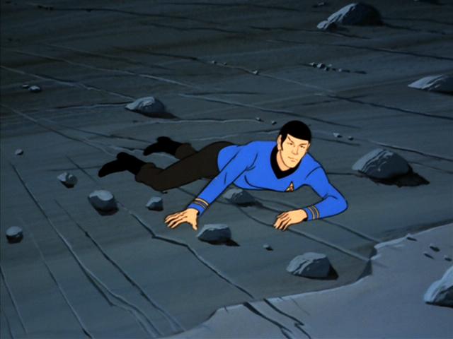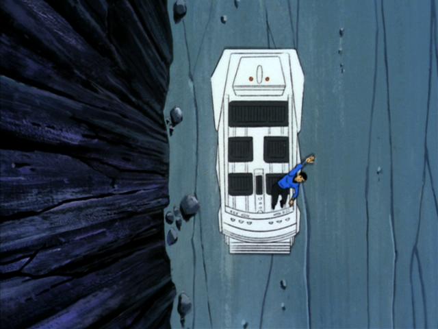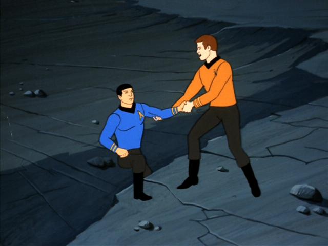 The U.S.S. Enterprise arrives at the Vedala asteroid, where Kirk and Spock are