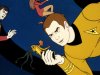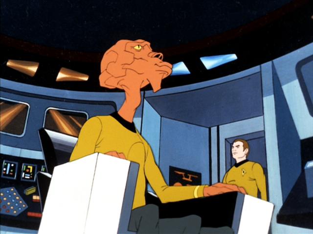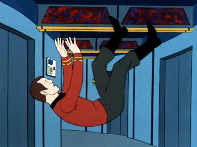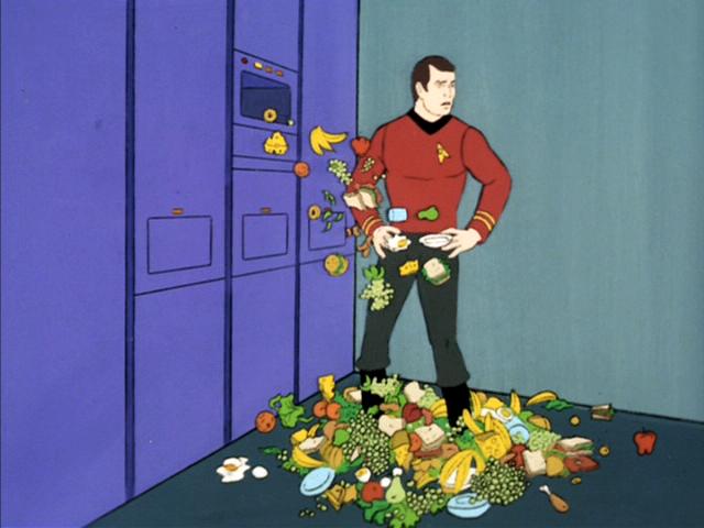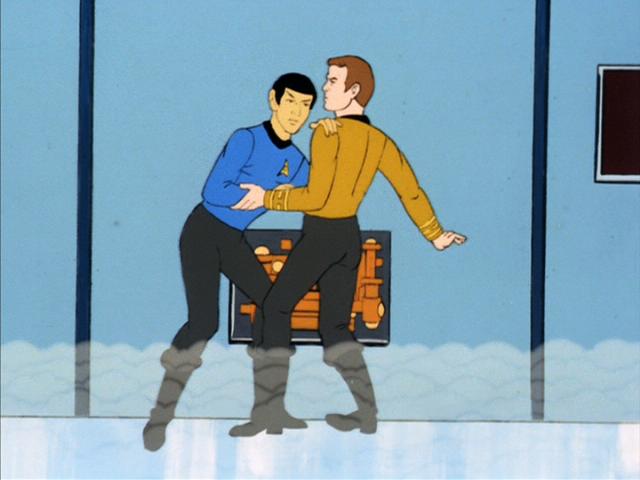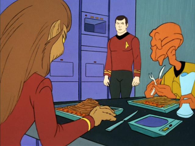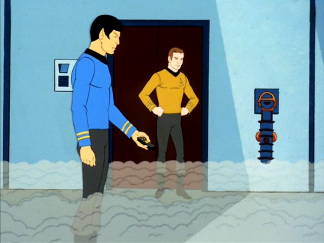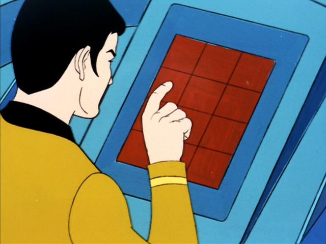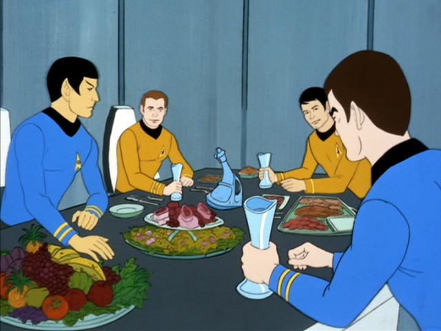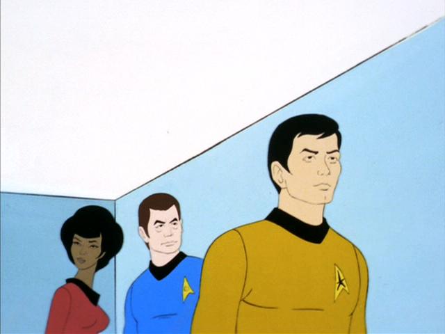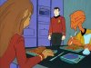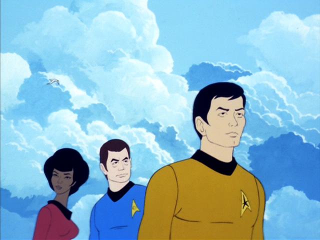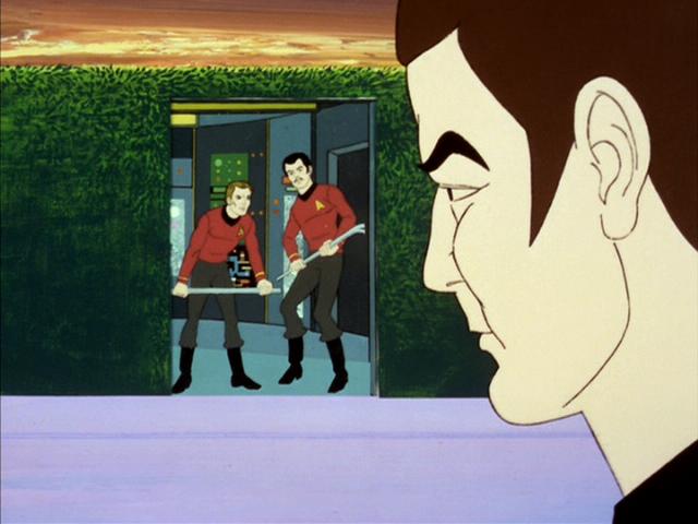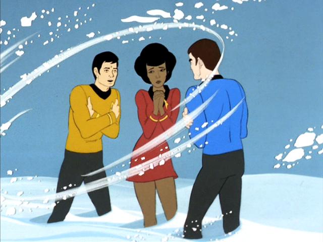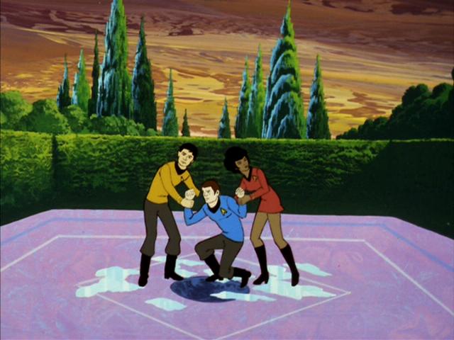 When the Enterprise is attacked by three Romulan warbirds, it hides in a gaseous energy field. The cloud affects the computer and it begins to play practical jokes on the crew, like making glasses leak, silverware turn to rubber, and covering decks with ice. The highlight of this episode is when McCoy, Uhura, and Sulu get trapped in trekdoms very first malfunctioning holodeck. The insurance rates for those things must be murder! |