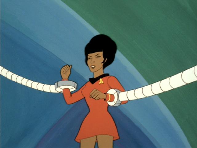 The crew revisits the amusement planet first seen in the TOS episode "Shore Leave". This time the robots the planet produces are aggresive, and dangerous. Lt. Uhura is captured by the planets master computer, who in the wake of the "Keepers" death, resents being made to serve humans. |